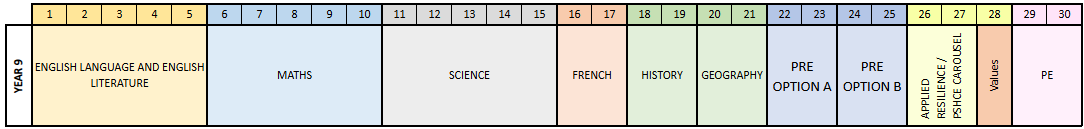Year 9 pupils have the opportunity to study pre-options with the aim of engaging, inspiring and up-skilling students so that they are enthusiastic about their option choices and prepared for success. All courses that are offered at GCSE can be studied at Year 9 pre-option level.